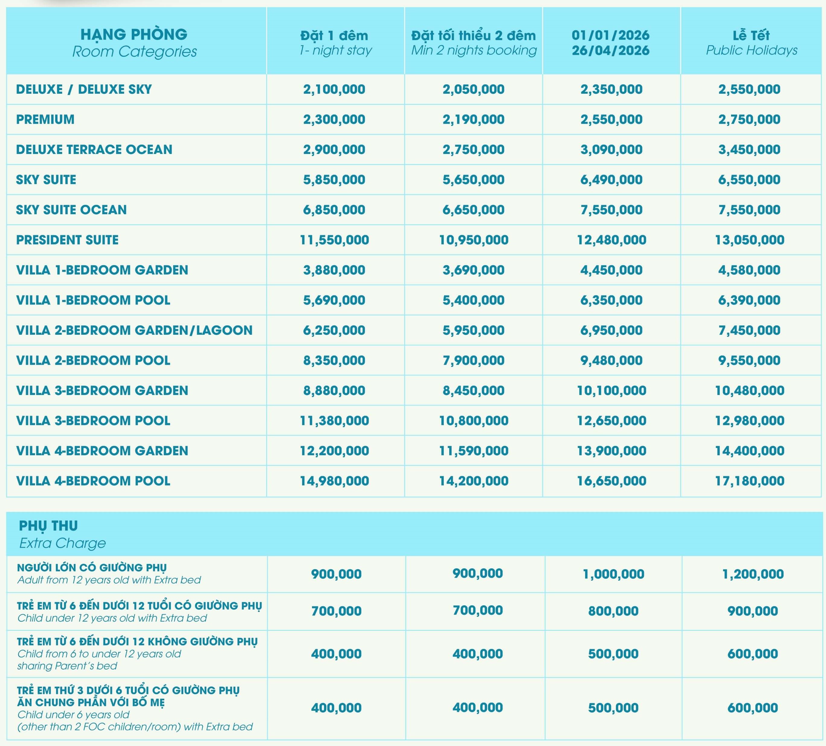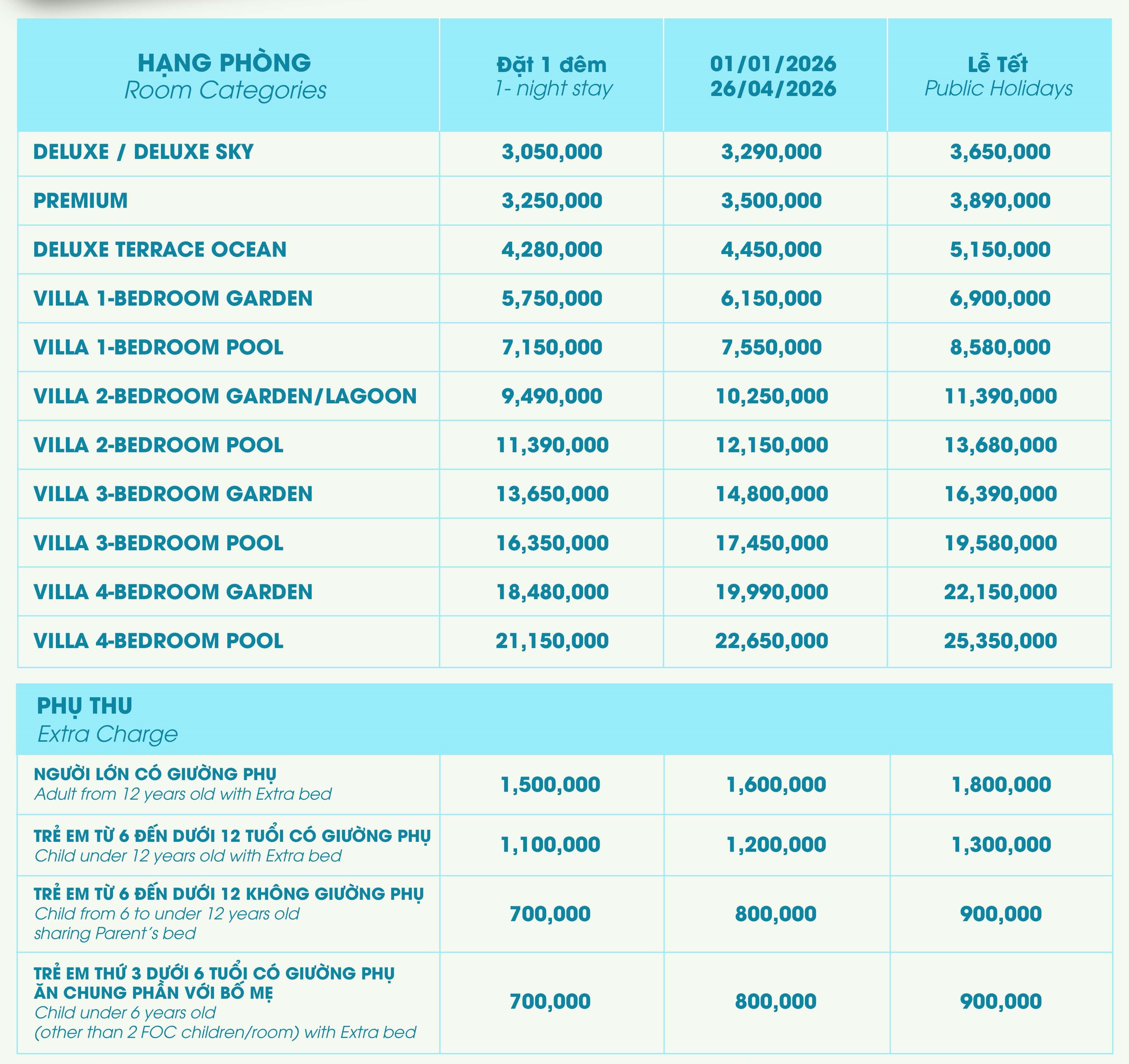 - Complimentary pick up & drop off at Cam Ranh airport (book 24 hours in advance)