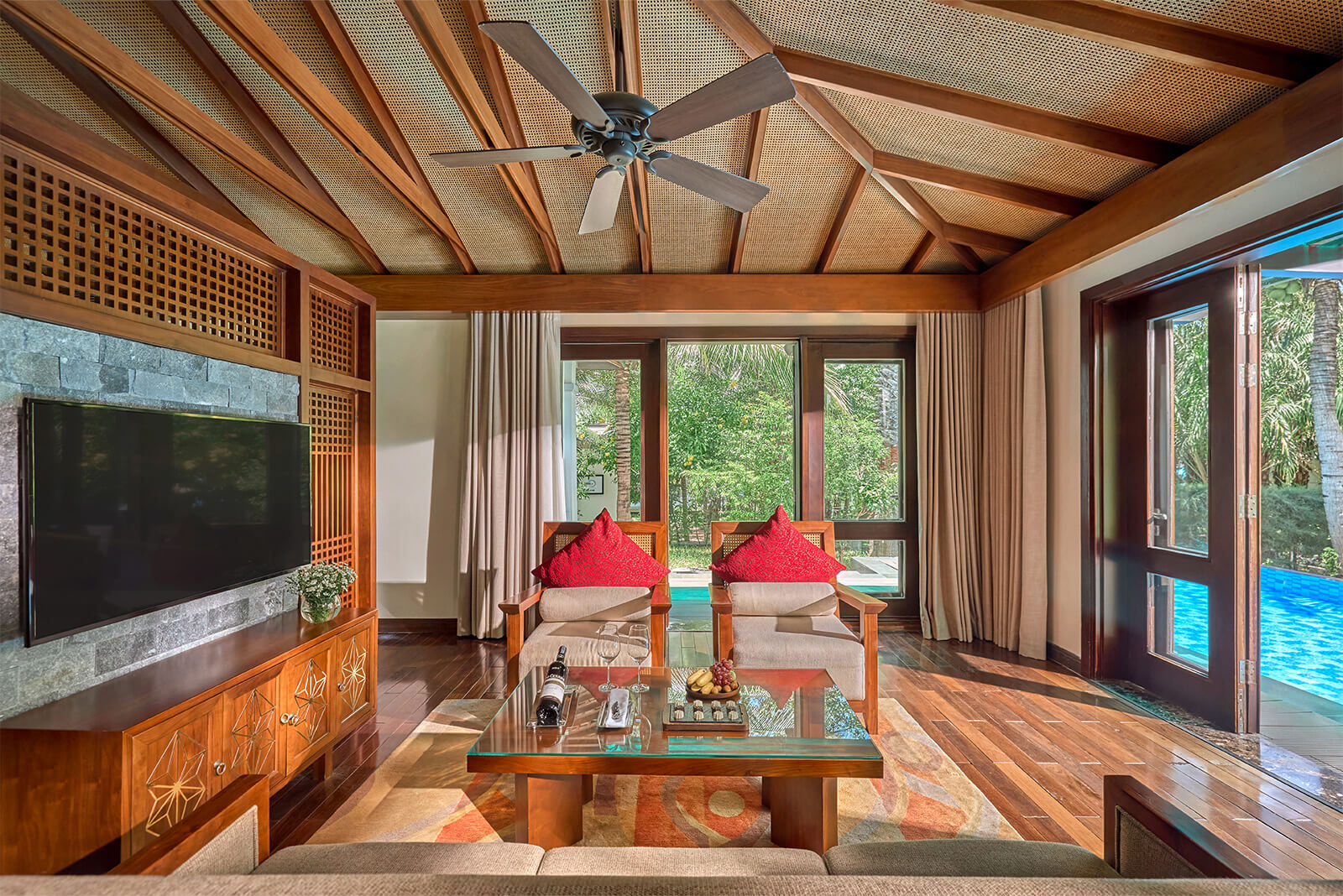 Phù hợp cho đại gia đình và nhóm bạn bè cùng chia sẻ khoảnh khắc bên nhau giữa một không gian tiện nghi, sang trọng và thoải mái bên hồ bơi