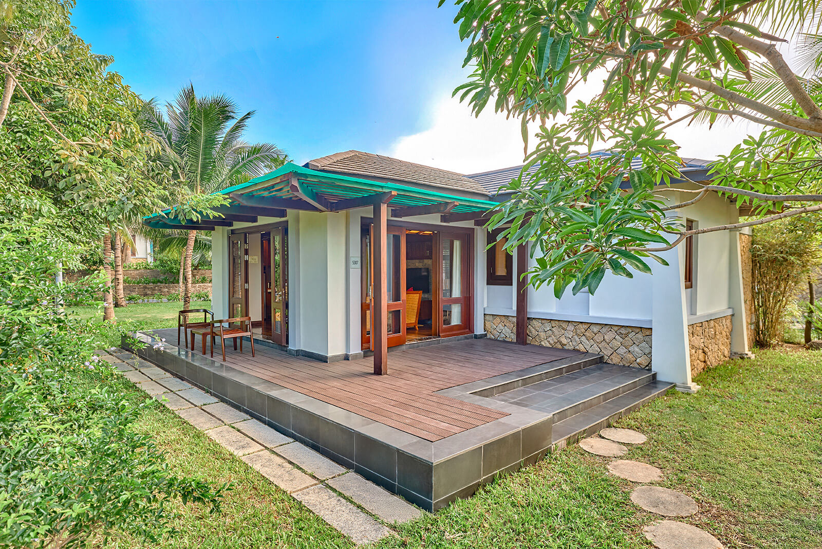 Biệt thự nằm giữa khu vườn nhiệt đới xanh ngát mang đến nơi nghỉ dưỡng lý tưởng cho những vị khách mong chờ một không gian yên tĩnh, gần gũi với thiên nhiên